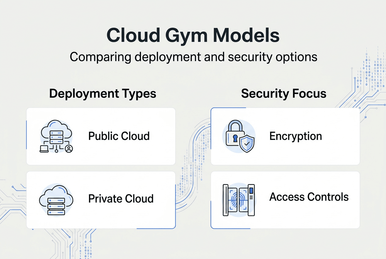 Cloud deployment models offer different trade-offs between cost, control, and security that align with varying gym sizes and technical capabilities. Understanding these options helps you select infrastructure that matches your operational needs and risk tolerance in 2026.